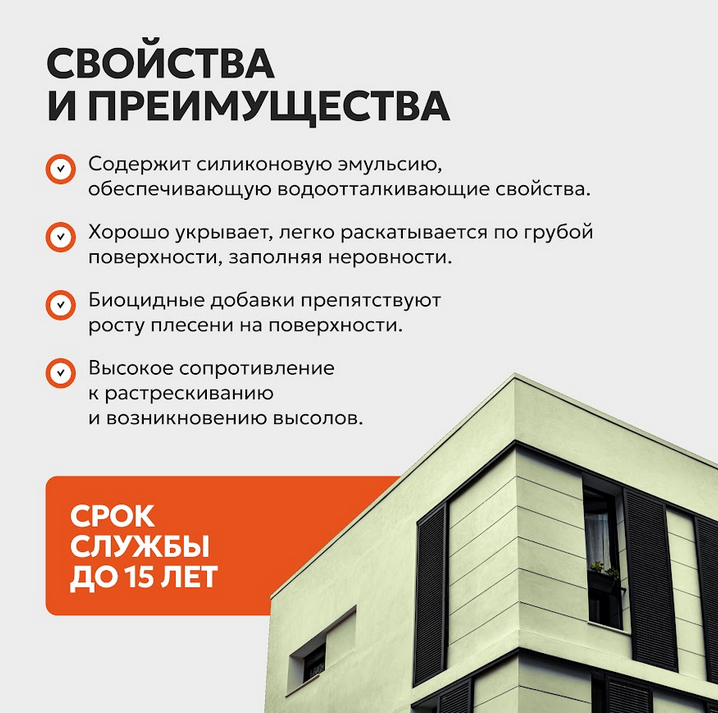 Хорошо укрывает, легко раскатывается по грубой поверхности, заполняя неровности
