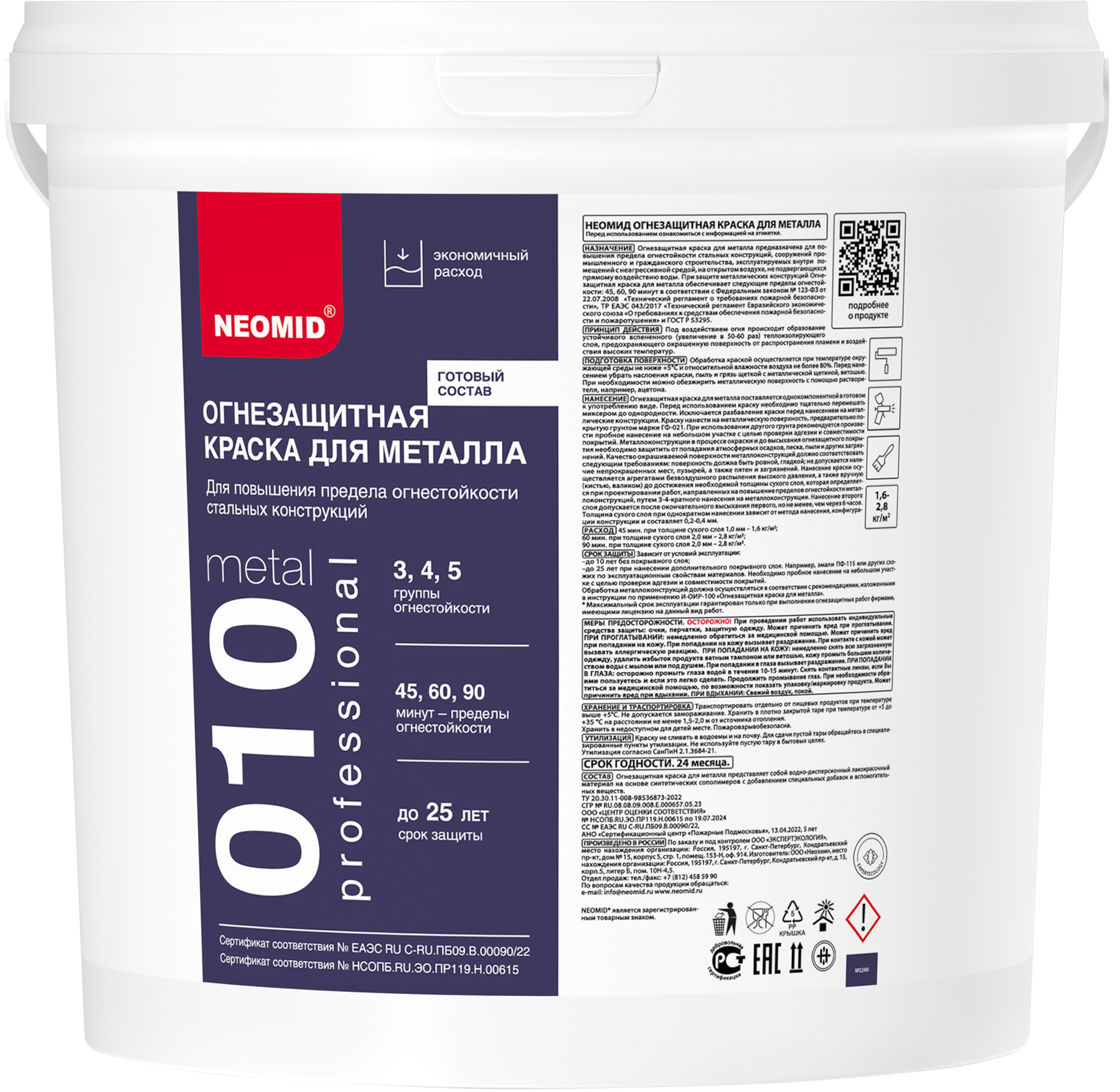 Краска огнезащитная для металла Neomid Metal 010 белая матовая 6кг