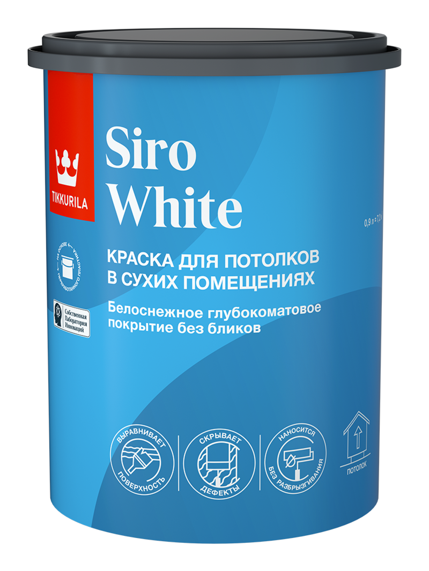 Краска для потолка Tikkurila SIRO WHITE AP глубокоматовая 0,9л