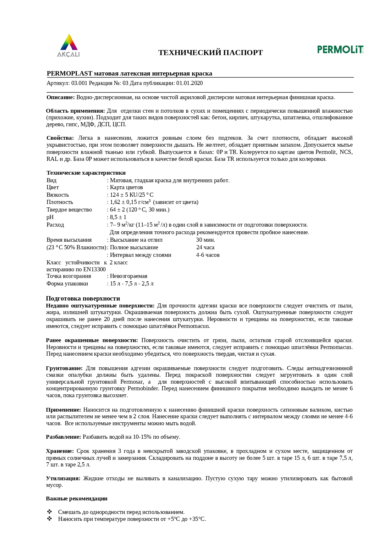 За счёт плотности, краска PERMOPLAST обладает высокой укрывистостью и образует идеально гладкую латексную поверхность без шагрени.