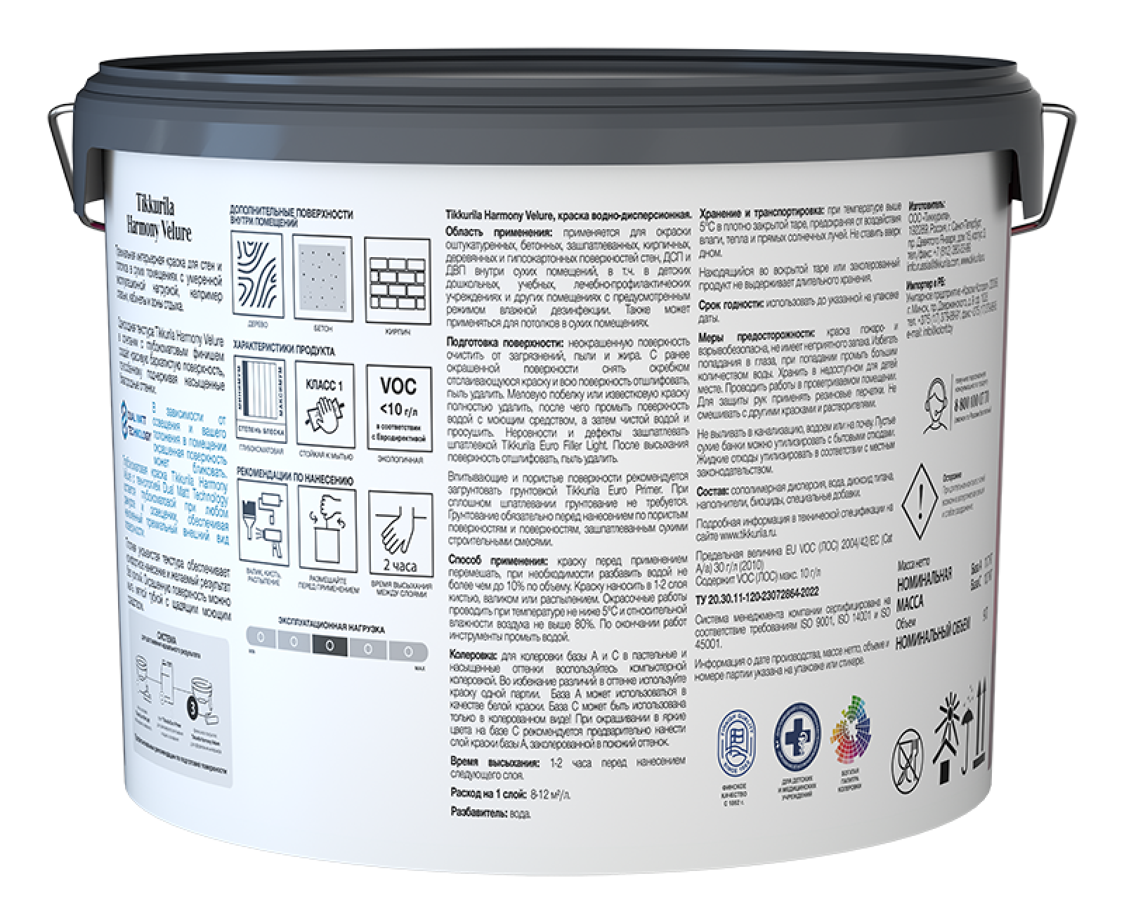 Краска водно-дисперсионная моющаяся Tikkurila Harmony Velure 9л база С