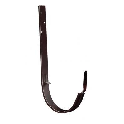 Кронштейн (крюк) желоба длинный - это элемент водосточной системы, предназначенный для фиксации водосточного желоба. Устанавливается на обрешетку до начала монтажа кровельного материала с шагом 600-900мм. Обязательно крюки устанавливаются на торцах желоба, в местах соединения желобов между собой и с углами желоба.