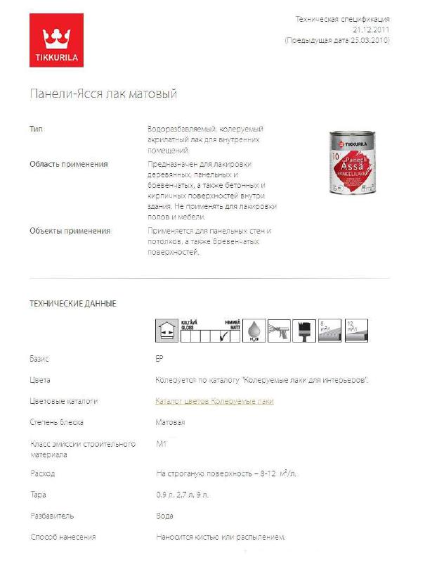 Колеровка: База ЕР может использоваться в качестве бесцветного покрытия, а также колероваться по каталогу Tikkurila «Колеруемые лаки для интерьеров».