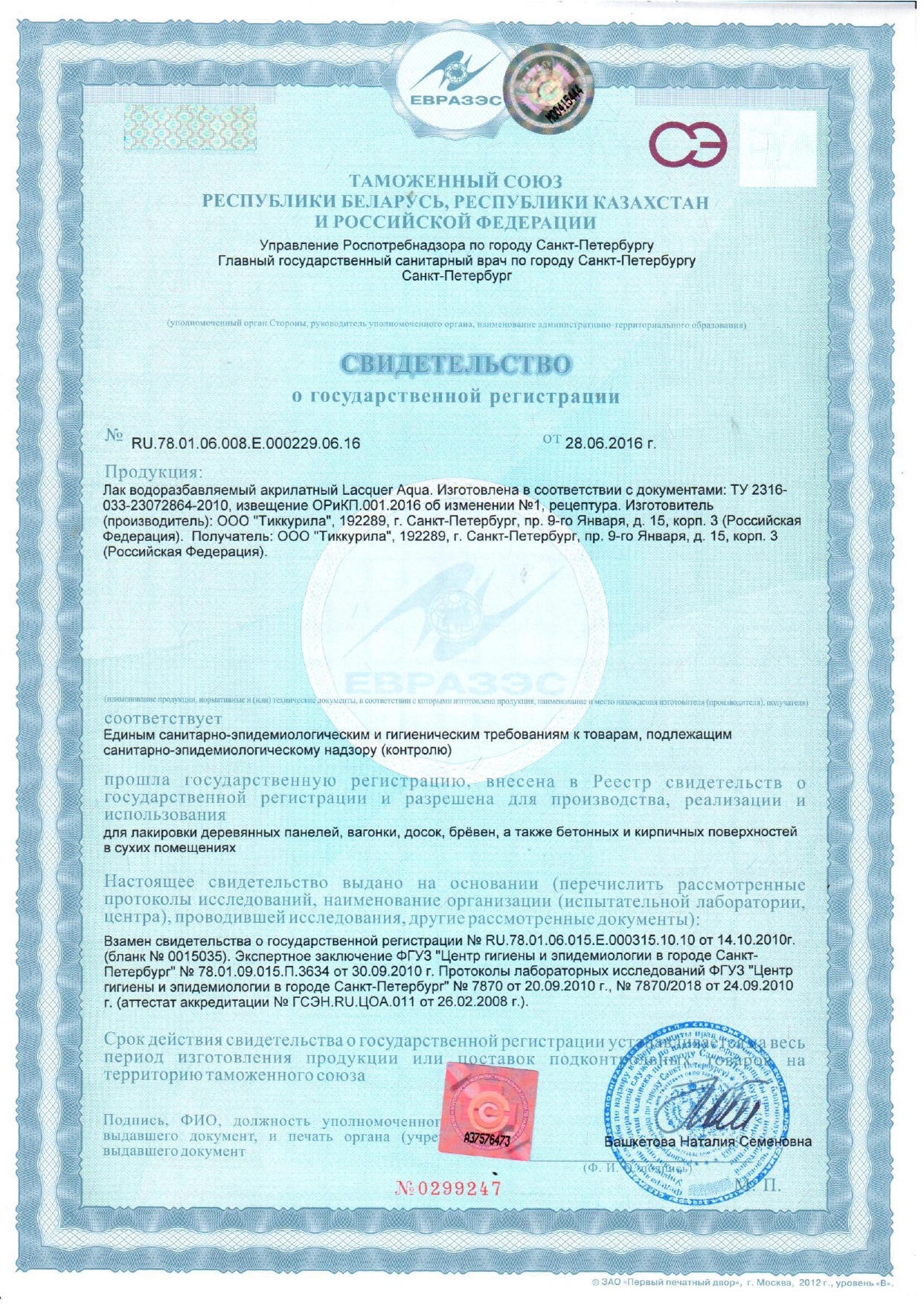 | Полное высыхание, ч: | 3 |