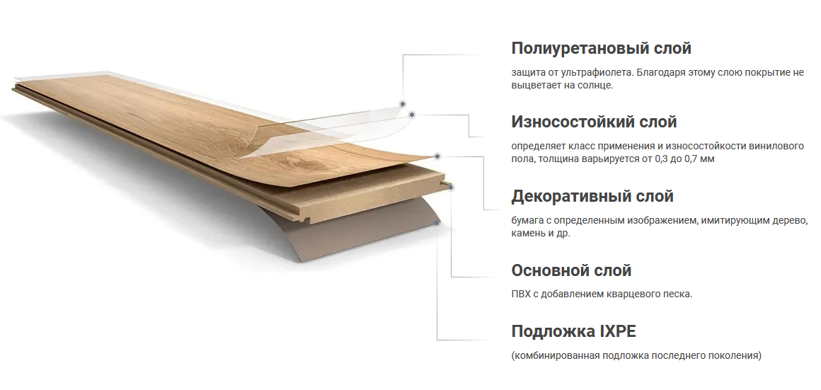 Основные особенности кварц-винилового напольного покрытия: