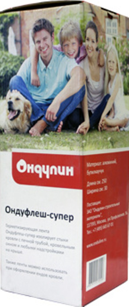 Герметизирующая лента Ондуфлеш Супер - самоклеящаяся пленка на битумной основе с алюминиевой вставкой.