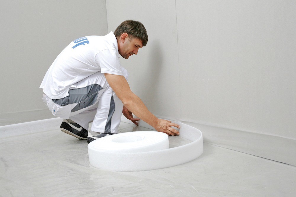 Лента должна быть уложена вдоль стен по всему периметру помещения и выступать на несколько сантиметров выше уровня готового пола.