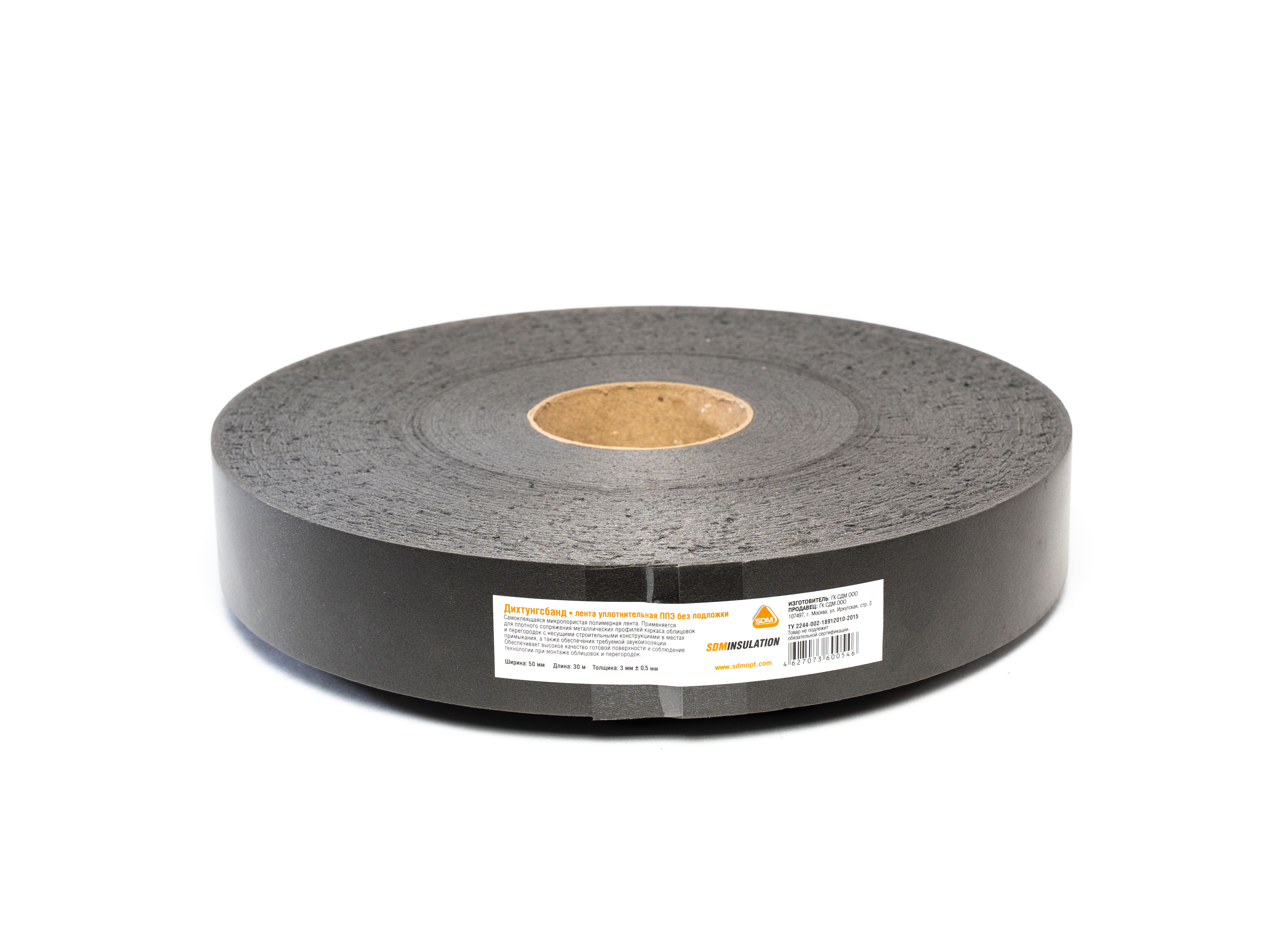 Лента уплотнительная самоклеящаяся Дихтунгсбанд 5см х 30м – лента, изготовленная из вспененного полиуретана с клеевой основой для монтажа, упакована в форме рулона.