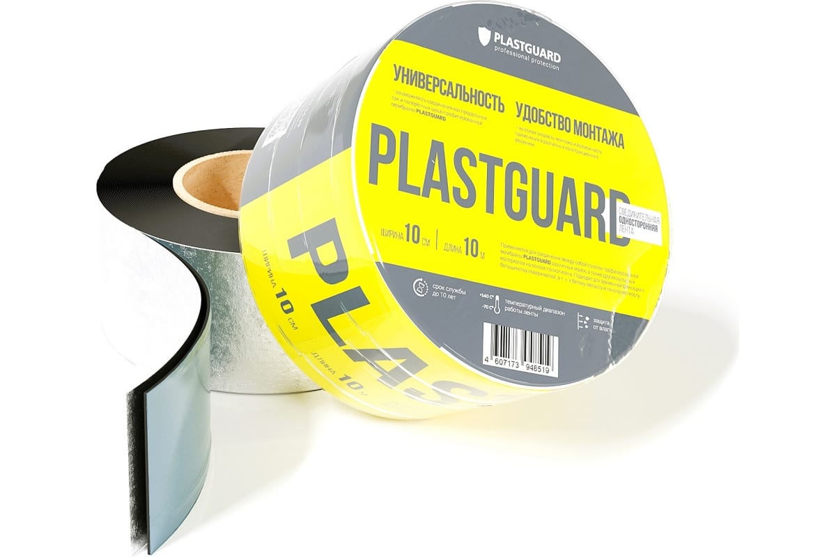 Применяется для соединения между собой полотен профилированной мембраны PLASTGUARD различных марок, а также других рулонных материалов на основе полиэтилена. Подходит для временной фиксации к большинству поверхностей, в т. ч. к бетону, металлу и пенополистиролу.