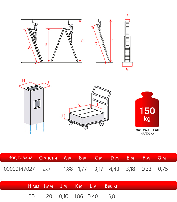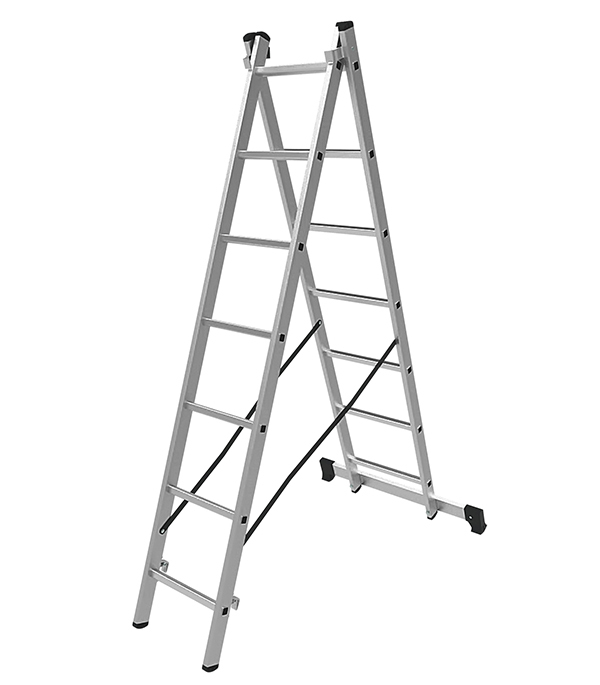 Лестница 2-хсекционная – многофункциональная лестница, которая может использоваться в трех вариантах: как приставная, раздвижная и двухсторонняя стремянка.