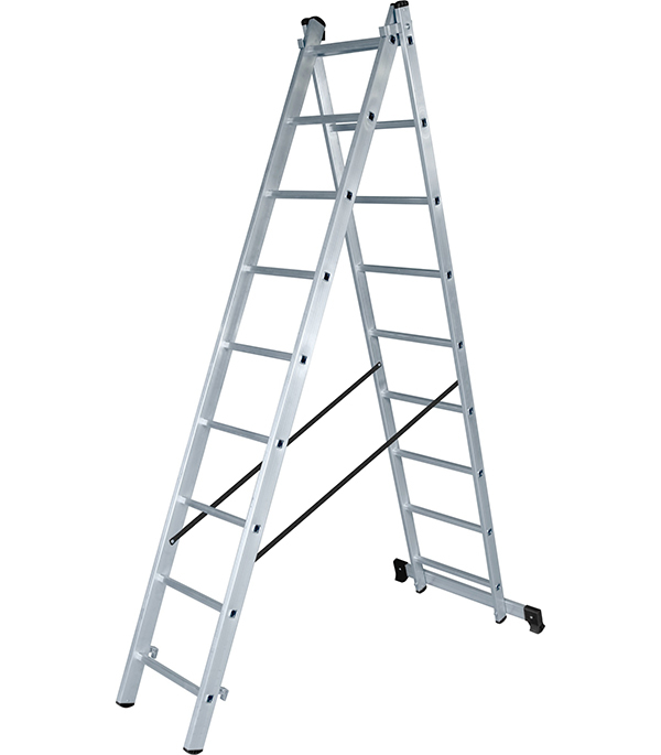 Лестница 2-хсекционная – многофункциональная лестница, которая может использоваться в трех вариантах: как приставная, раздвижная и двухсторонняя стремянка.