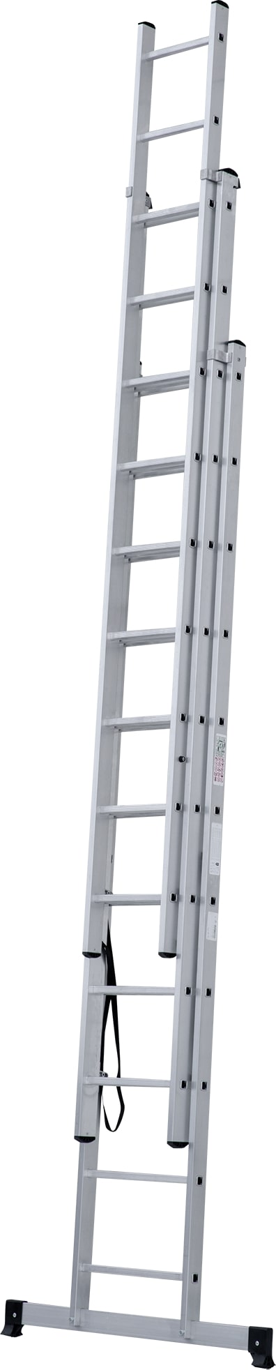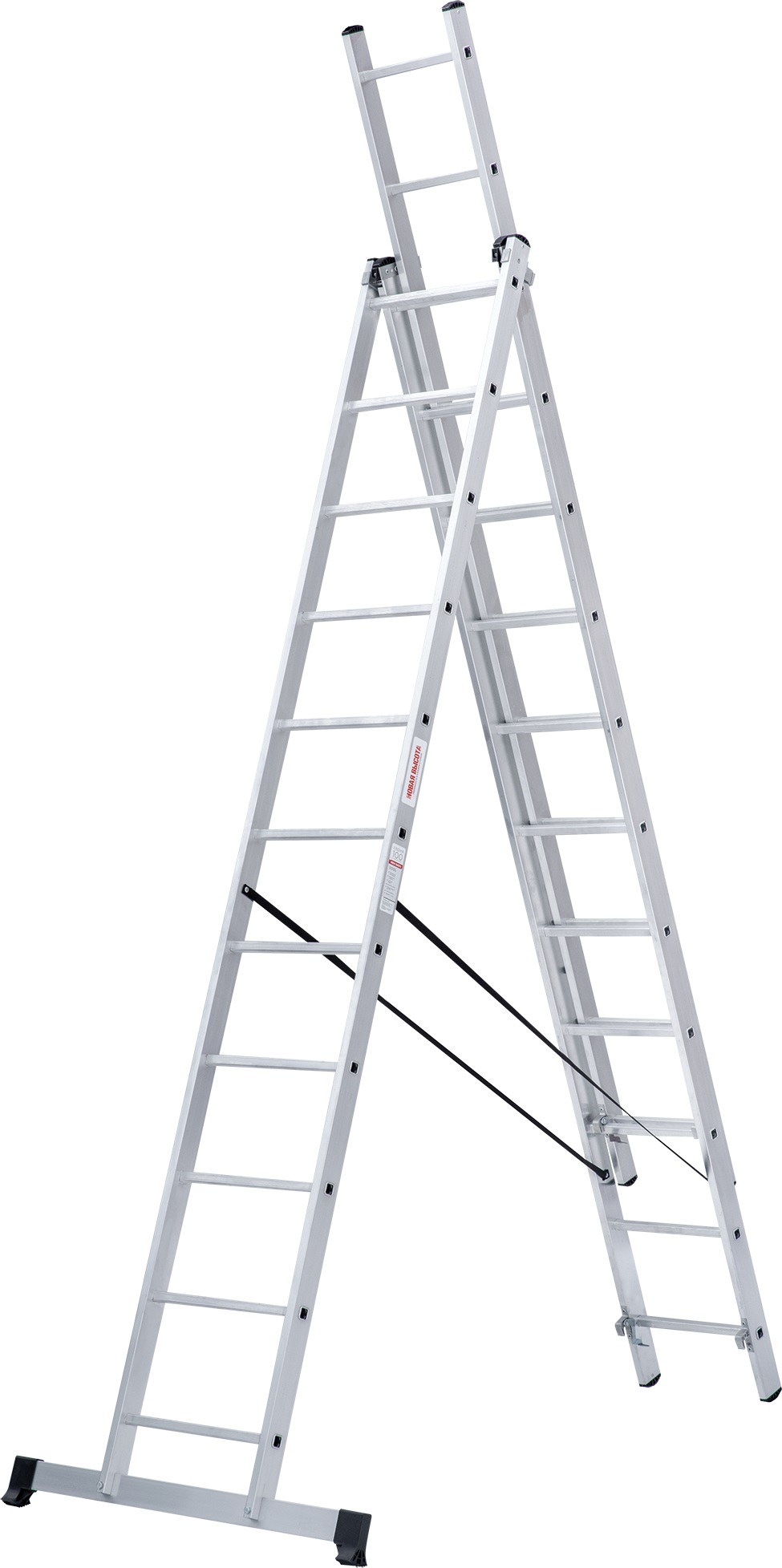 Лестница трехсекционная – это универсальная лестница, которая может использоваться в разных режимах: как приставная, раздвижная, двухсторонняя стремянка, стремянка с выдвижной секцией и лестничный марш.