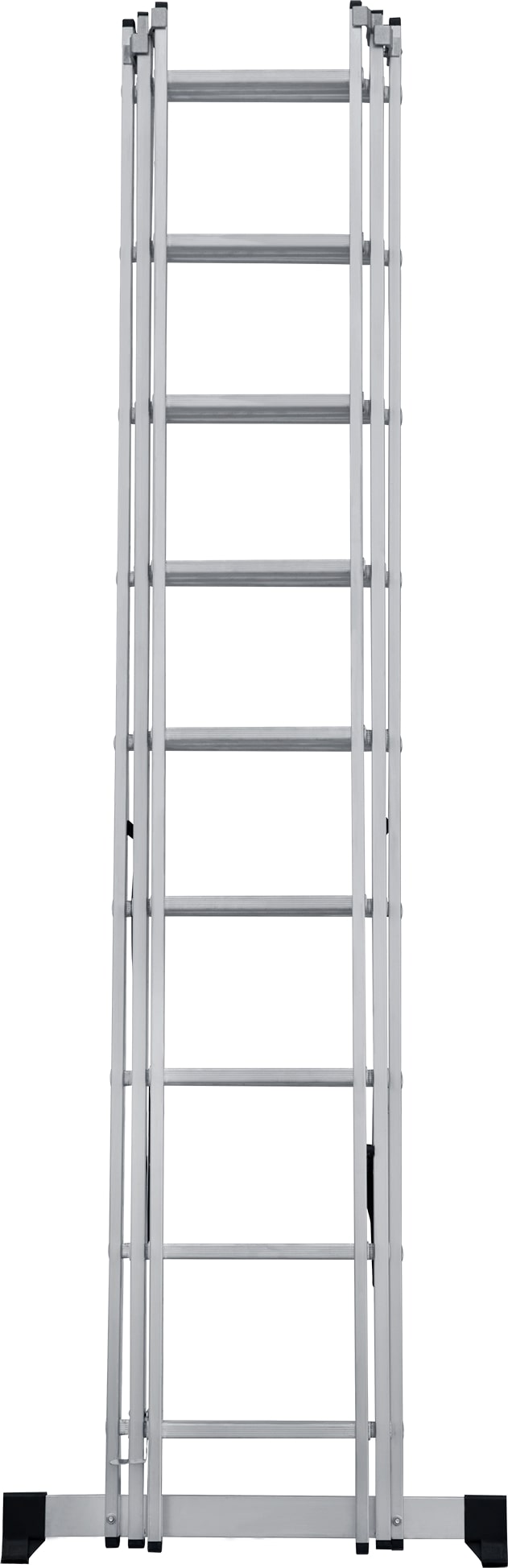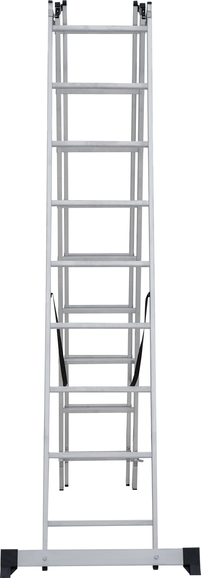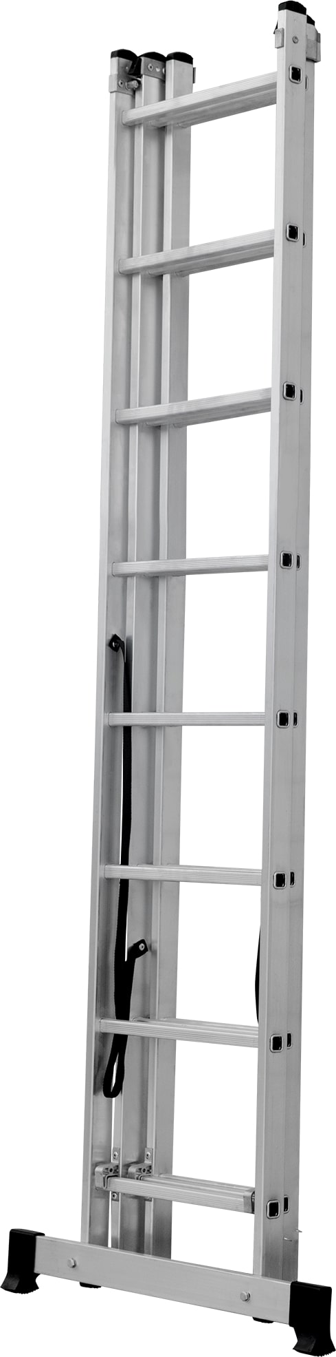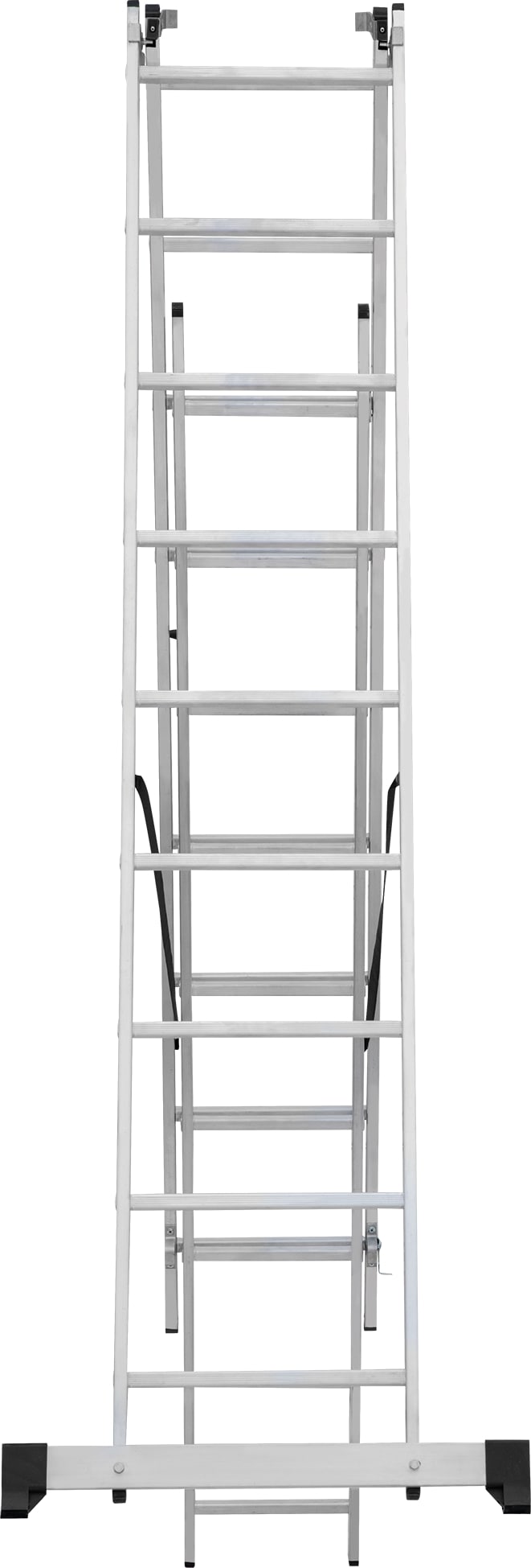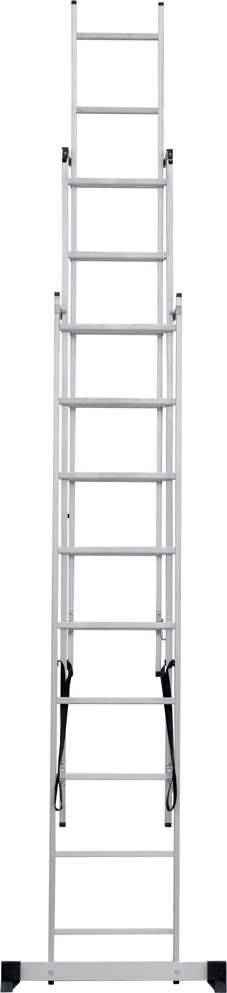 Лестница трехсекционная – это универсальная лестница, которая может использоваться в разных режимах: как приставная, раздвижная, двухсторонняя стремянка, стремянка с выдвижной секцией и лестничный марш.