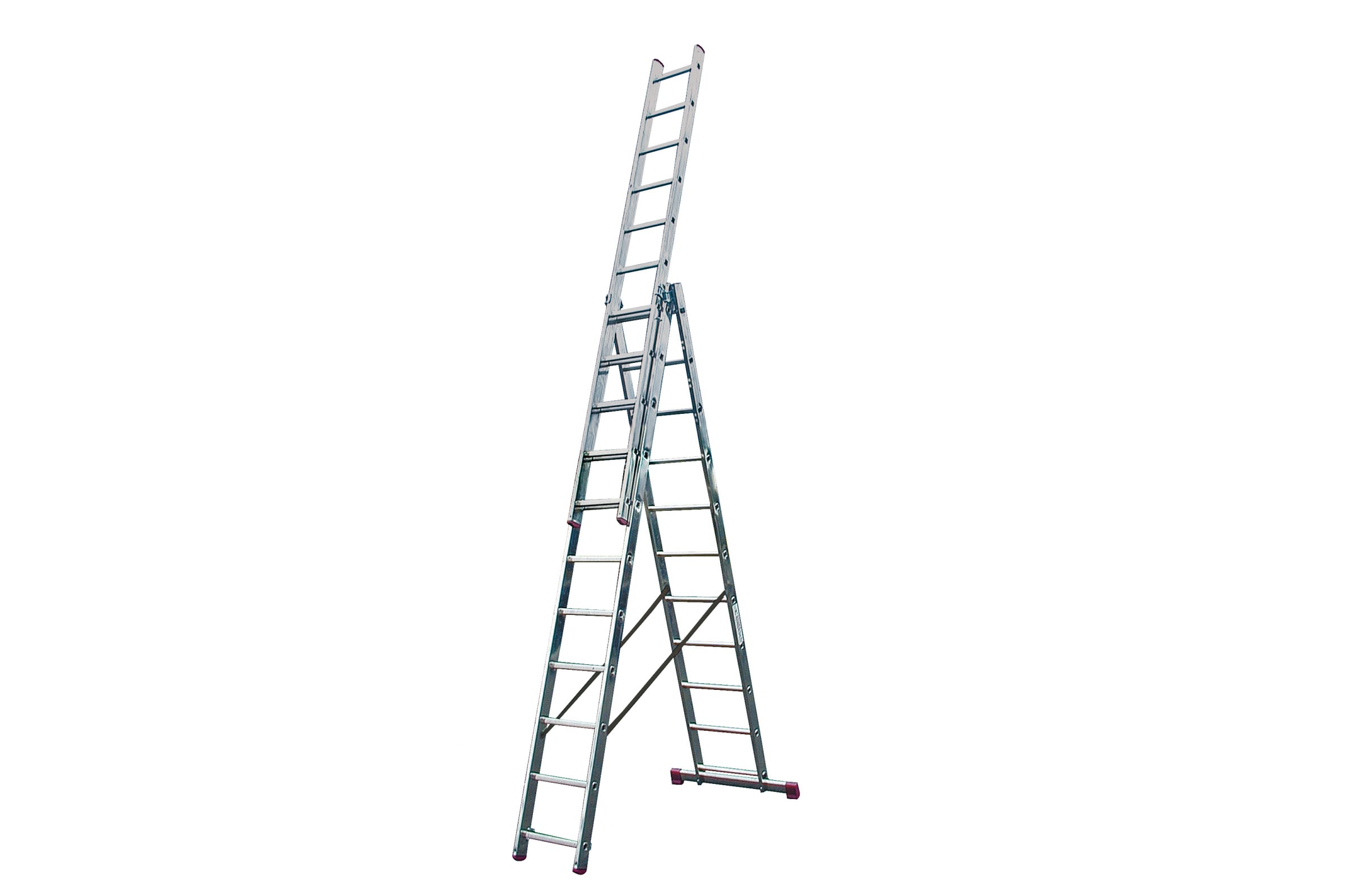 Лестница 3-х секционная алюминиевая 3х11 - сочетает в себе сразу функции приставной лестницы, стремянки и двухсекционной лестницы. Эта лестница собрала в себе все преимущества односекционной и двухсекционной лестницы. Состоящая из трех частей она может использоваться в широком диапазоне высот. Прочный стальной направляющий профиль обеспечивает удобное выдвижение лестницы.