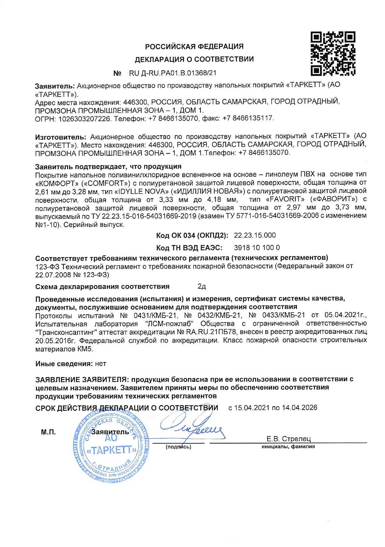 Срок службы - 15 лет, при соблюдении требований по укладке и уходу.