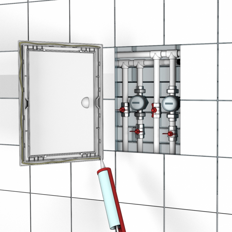 Люк ревизионный металлический 500 х 500мм может устанавливаться на стене.