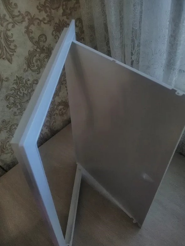 Дверца-люк выполнена из высокопрочного металла и окрашена в белый цвет. Возможна установка в конструкциях из гипсокартонных листов (ГКЛ, ГКЛВ, ГКЛВО) , гипсоволокнистых суперлистов, цементных плит и других материалов для устройства ревизионных люков.