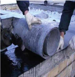 Каучукобитумная мастика применяется в качестве обмазочной гидроизоляции бетонных поверхностей, элементов фундамента, деревянных и металлических конструкции, а также для приклеивания рулонных кровельных и гидроизоляционных материалов, полимерных изоляционных пленок к бетонным и деревянным основаниям.