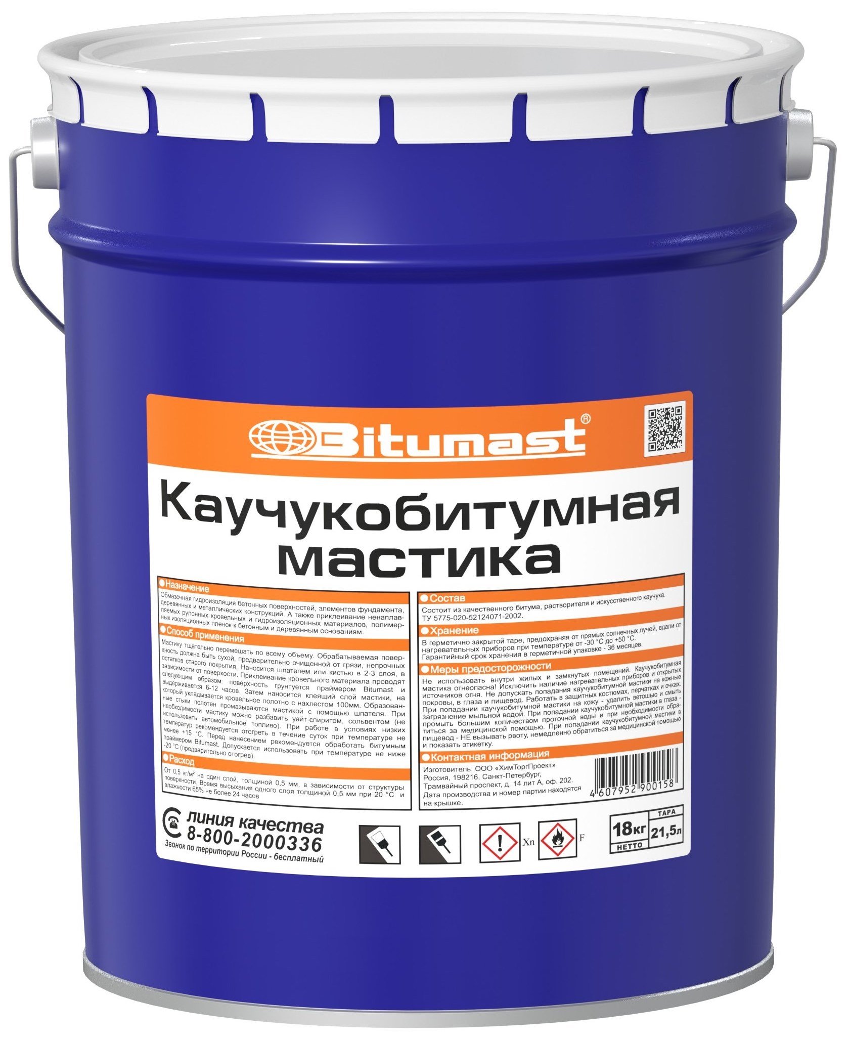 Каучукобитумная мастика Битумаст – полностью готовый к применению продукт на основе нефтяного битума, модифицированного искусственным каучуком, органического растворителя, пластификатора.