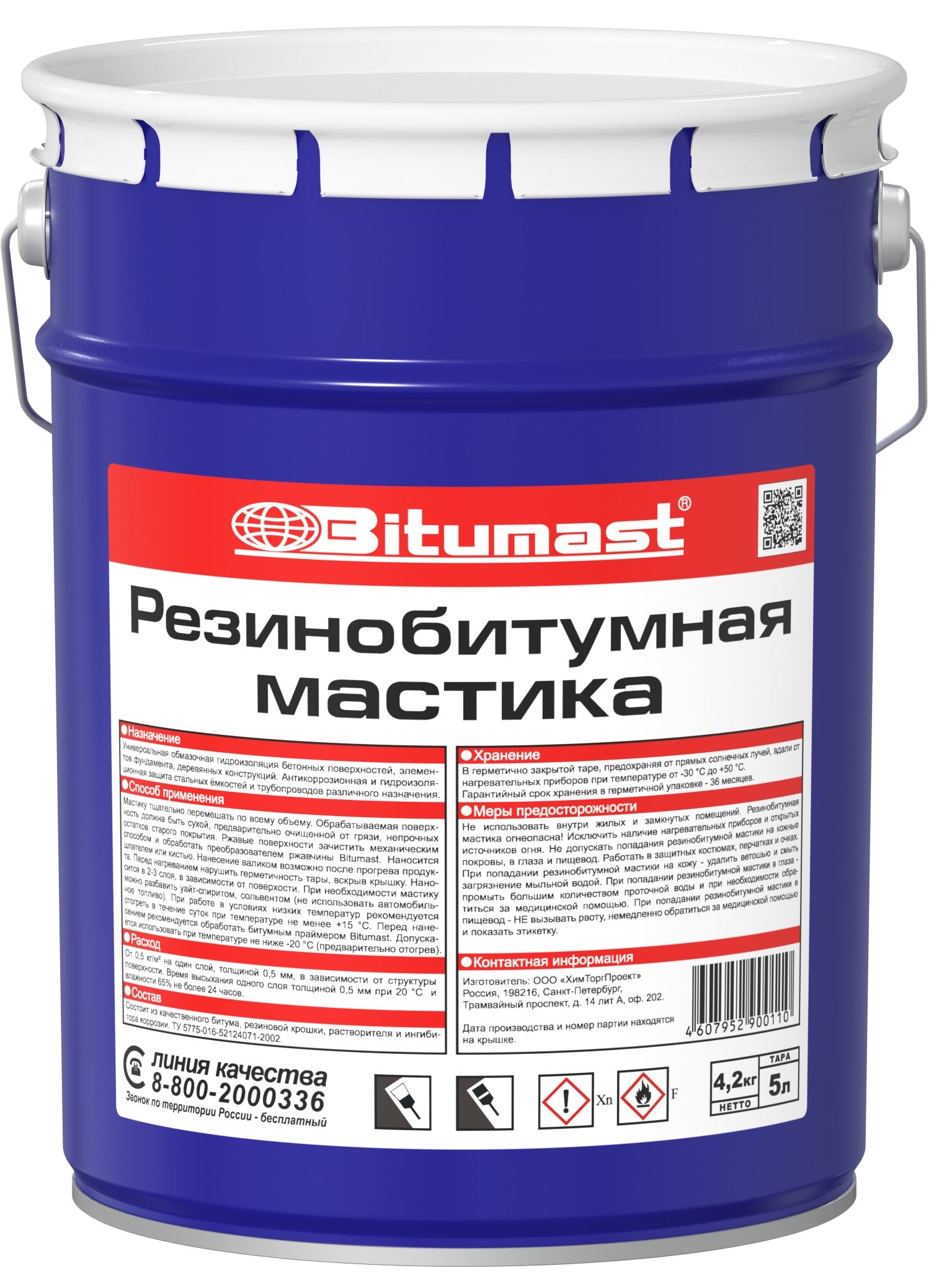 Резинобитумная мастика Битумаст – это полностью готовый к применению продукт на основе нефтяного битума, мелко-дисперсной резиновой крошки, растворителя, пластификатора и ингибитора коррозии.