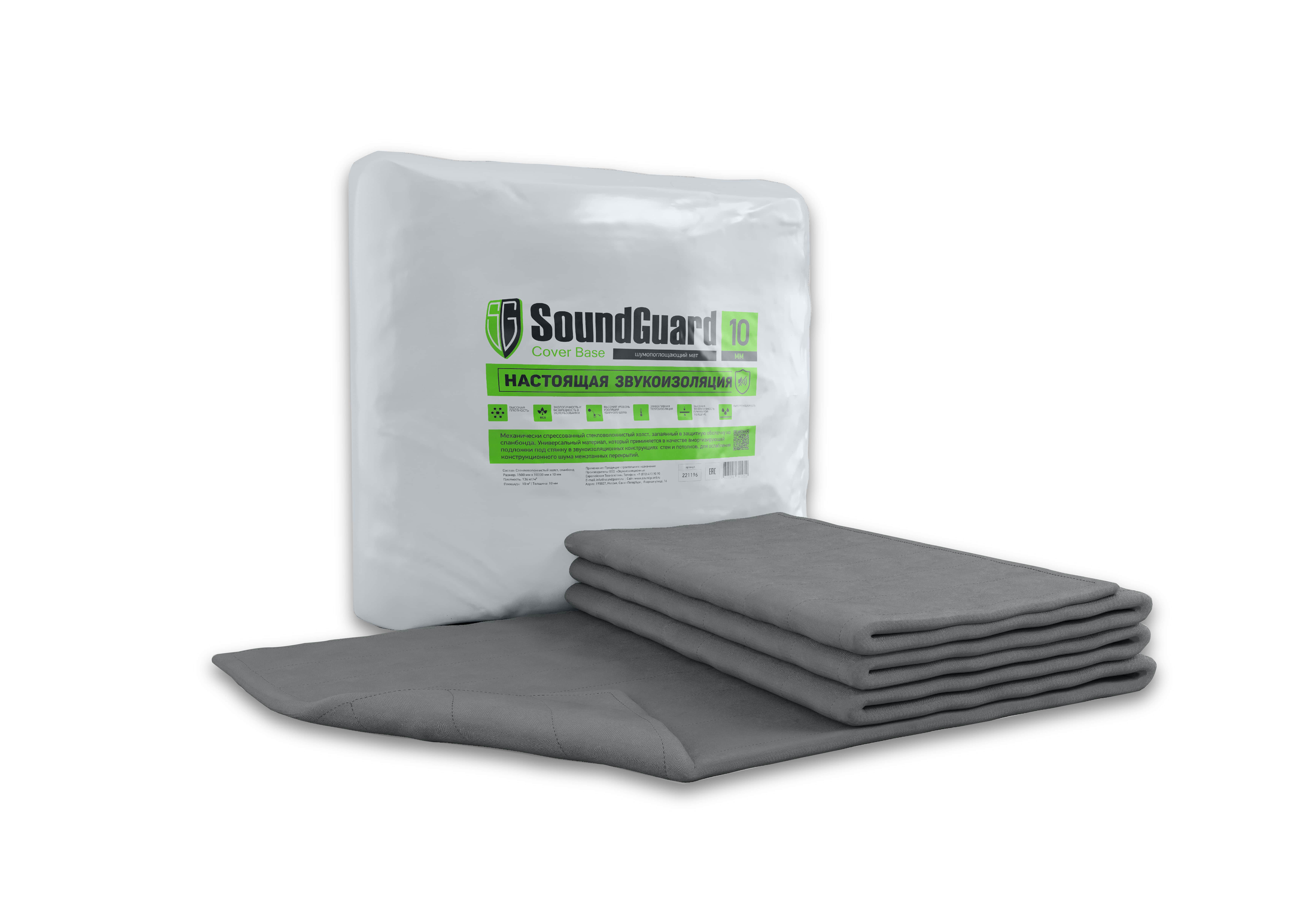 SoundGuard Cover Base - это вибро-, звукоизоляционный материал, состоящий из иглопробивного стекловолокнистого холста, спрессованного механическим способом, запаянный в защитную оболочку из спанбонда. Применяется в помещениях разного типа и назначения: при звукоизоляции полов — в качестве упругой вибродемпфирующей прокладки под стяжкой; в конструкции звукоизоляции стен и потолков — в качестве амортизирующего и шумопоглощающего слоя; в межэтажных перекрытиях — для ослабления конструкционного шума.