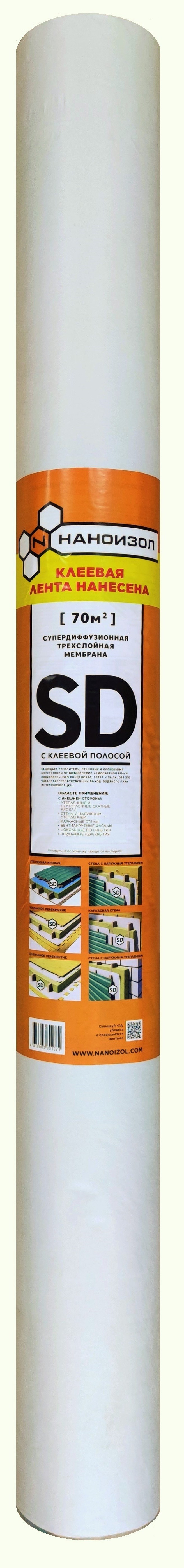 Мембрана супердиффузионная Наноизол SD с клеевой полосой 70 кв.м/рулон