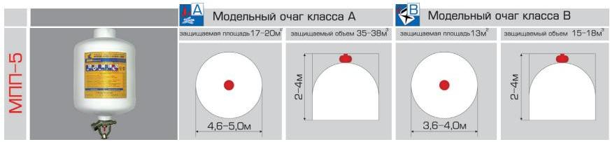 Защищаемая площадь при тушении твердых веществ (класс пожара А): 17 м2 , и жидких веществ (класс пожара В): 10 м2.