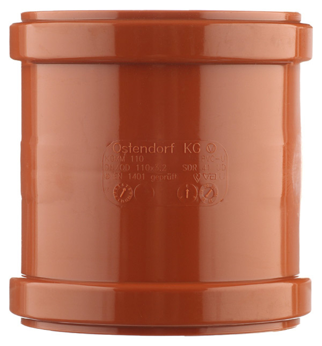 Муфта канализационная двухраструбная предназначена для соединения обрезков фановых труб Ostendorf с гладкими краями (без раструба)
