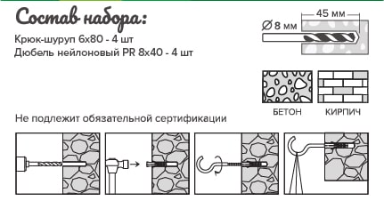 Крюк-шуруп 6х80 - 4 шт
