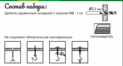 Дюбель пружинный складной с крюком М8 - 1 шт