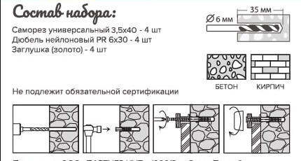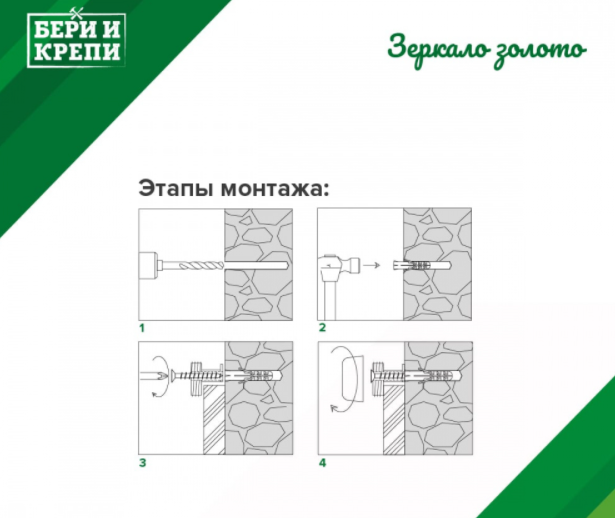 Набор бери и крепи для зеркала отлично нам подошел для монтажа зеркала в ванной комнате.Материку спасибо за качественный крепеж.