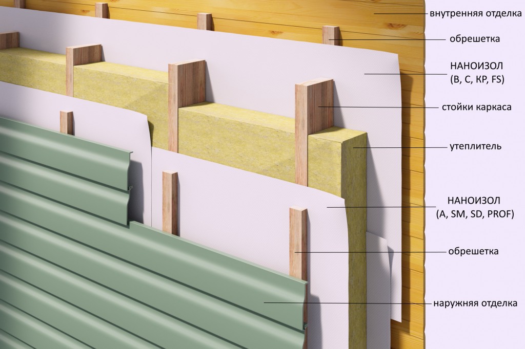 Мембрана Наноизол В применяется для защиты утеплителя и строительных конструкций от проникновения паров воды изнутри помещения.