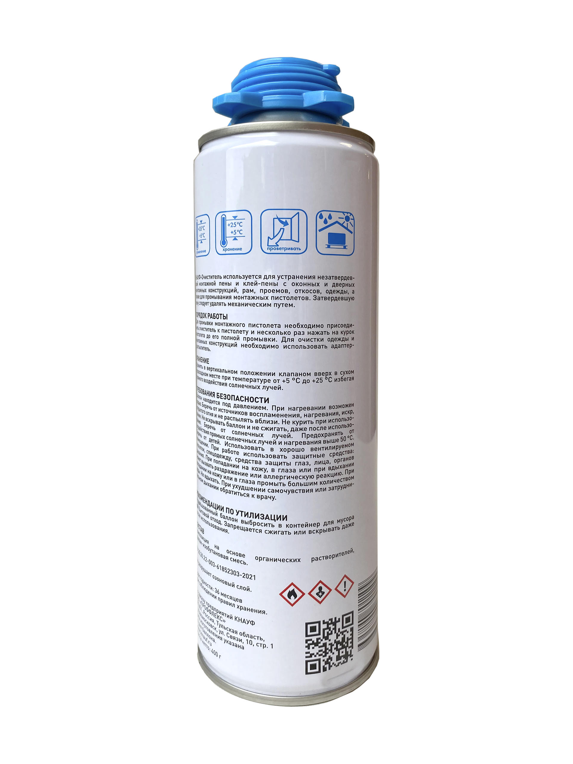 Очиститель пены от Кнауф - классное средство. Очистил пистолет и остатки пены на поверхности. Хороший объем и приятная цена.