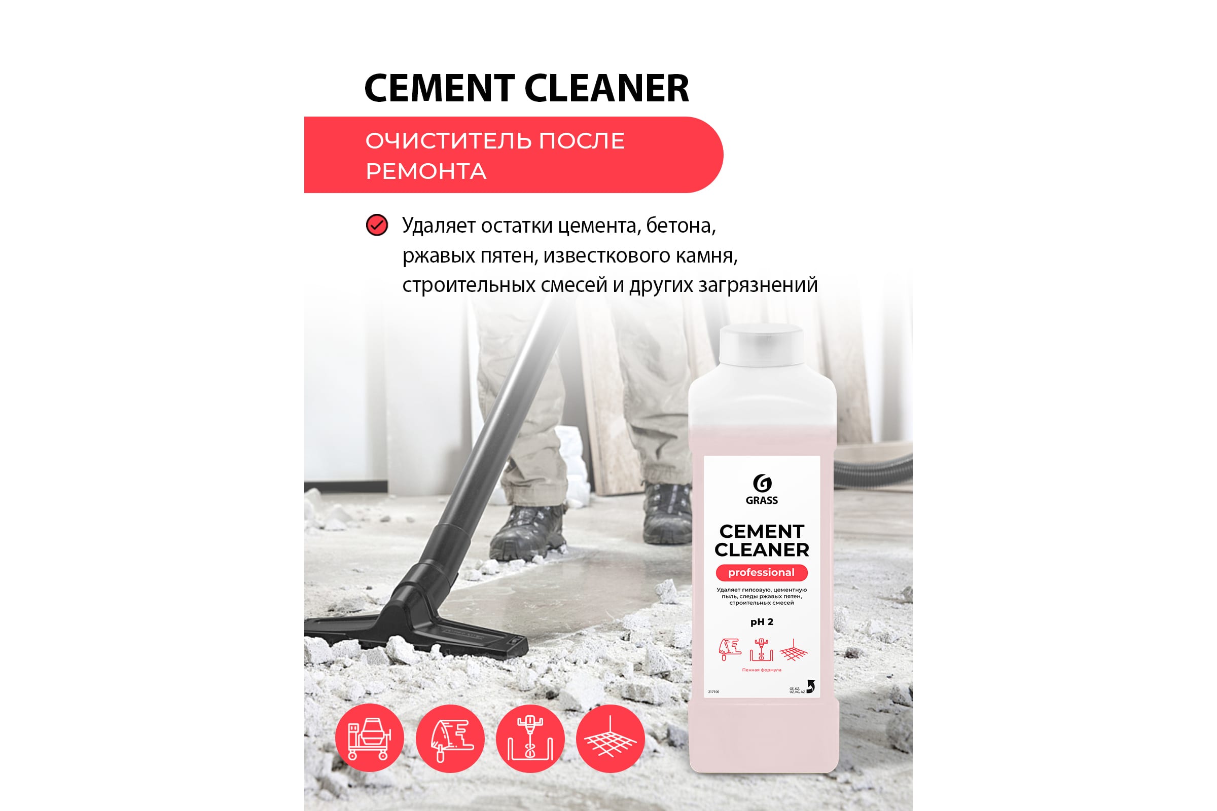Средство моющее GRASS для очистки полов и других поверхностей от остатков цемента 1л
