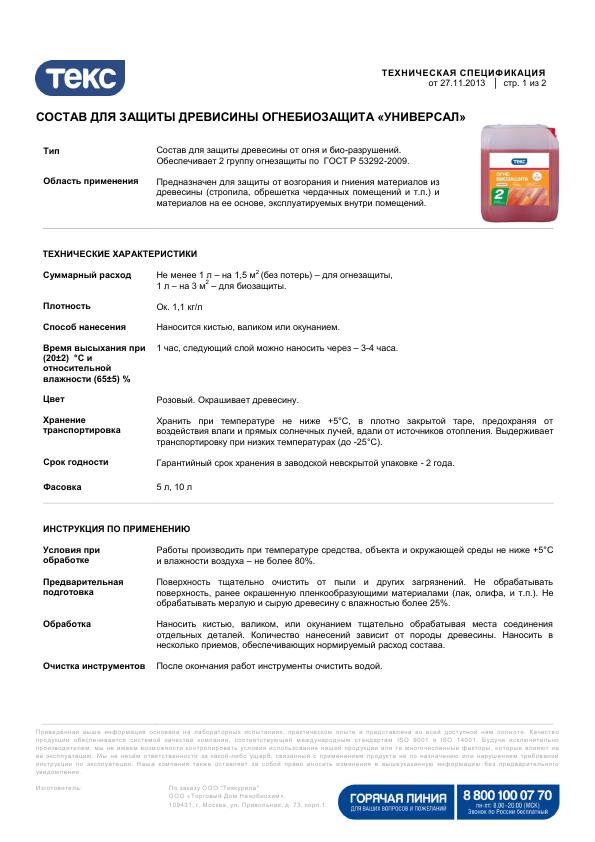 расход: 1л/ 1,5м2 для огнезащиты, 1л/3м2 для биозащиты