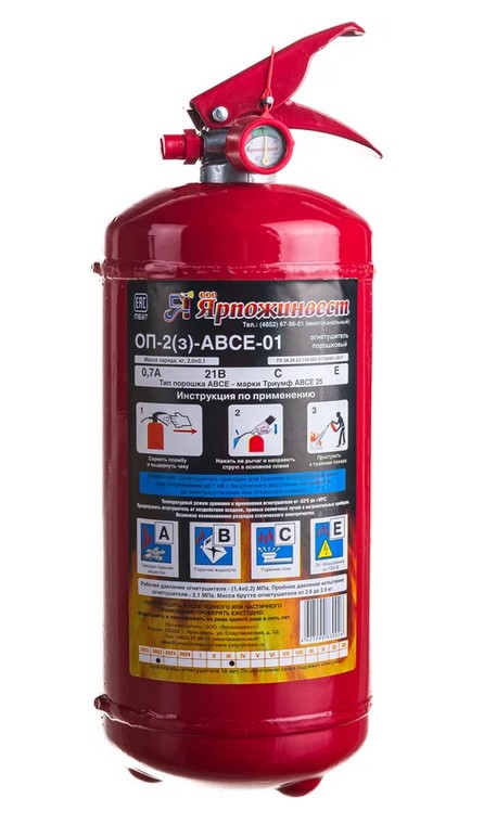 Огнетушитель порошковый ОП-2 Ярпожинвест - универсальный переносной огнетушитель закачного типа.