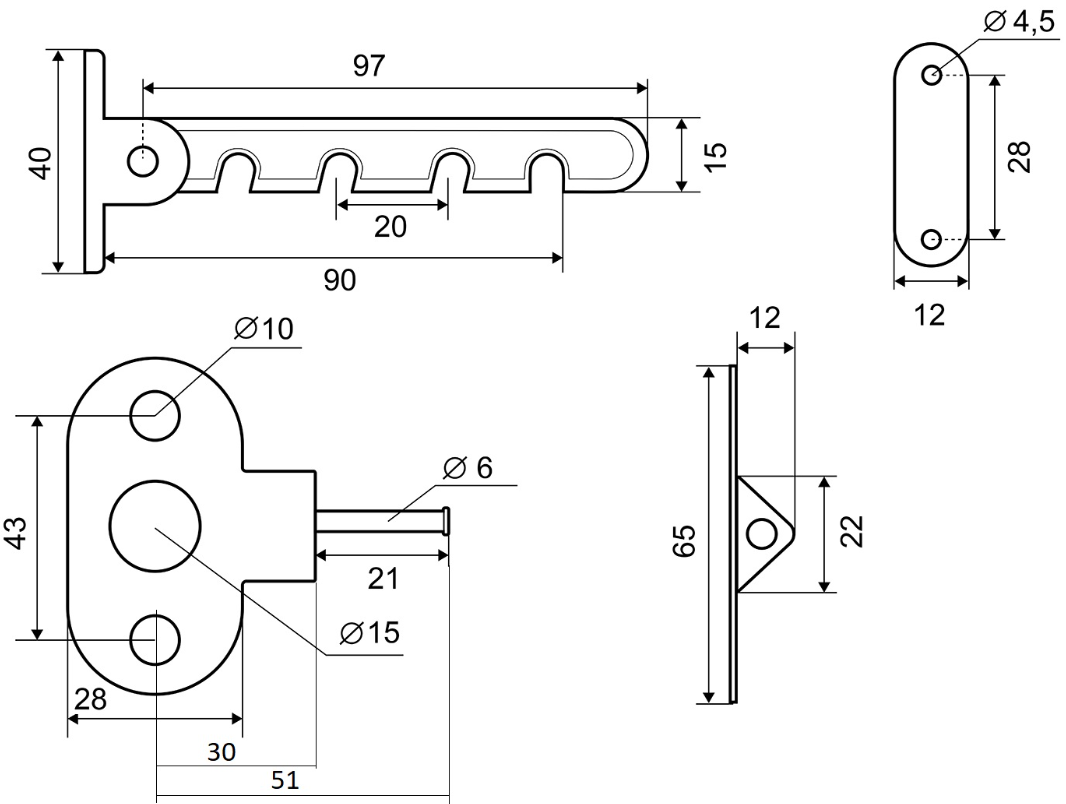 Ограничитель оконный 4 деления (гребенка) с саморезами