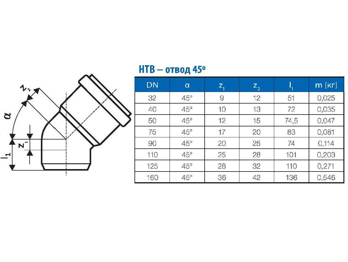 Фирменный фитинг для плавного изменения направления канализационных трубопроводов системы Ostendorf. Оптимальный угол 45° обеспечивает минимальное гидравлическое сопротивление и предотвращает образование засоров.