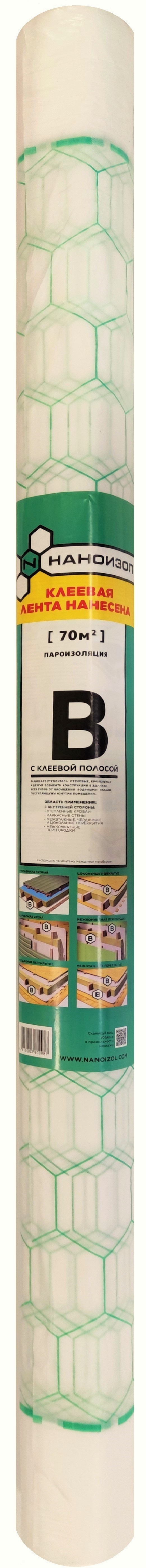 Пароизоляция Наноизол В с клеевой полосой 70 кв.м/рулон