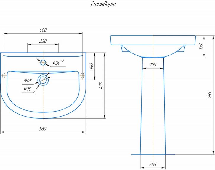 Предназначен для комплектации умывальника Стандарт (код: 00-00051643)