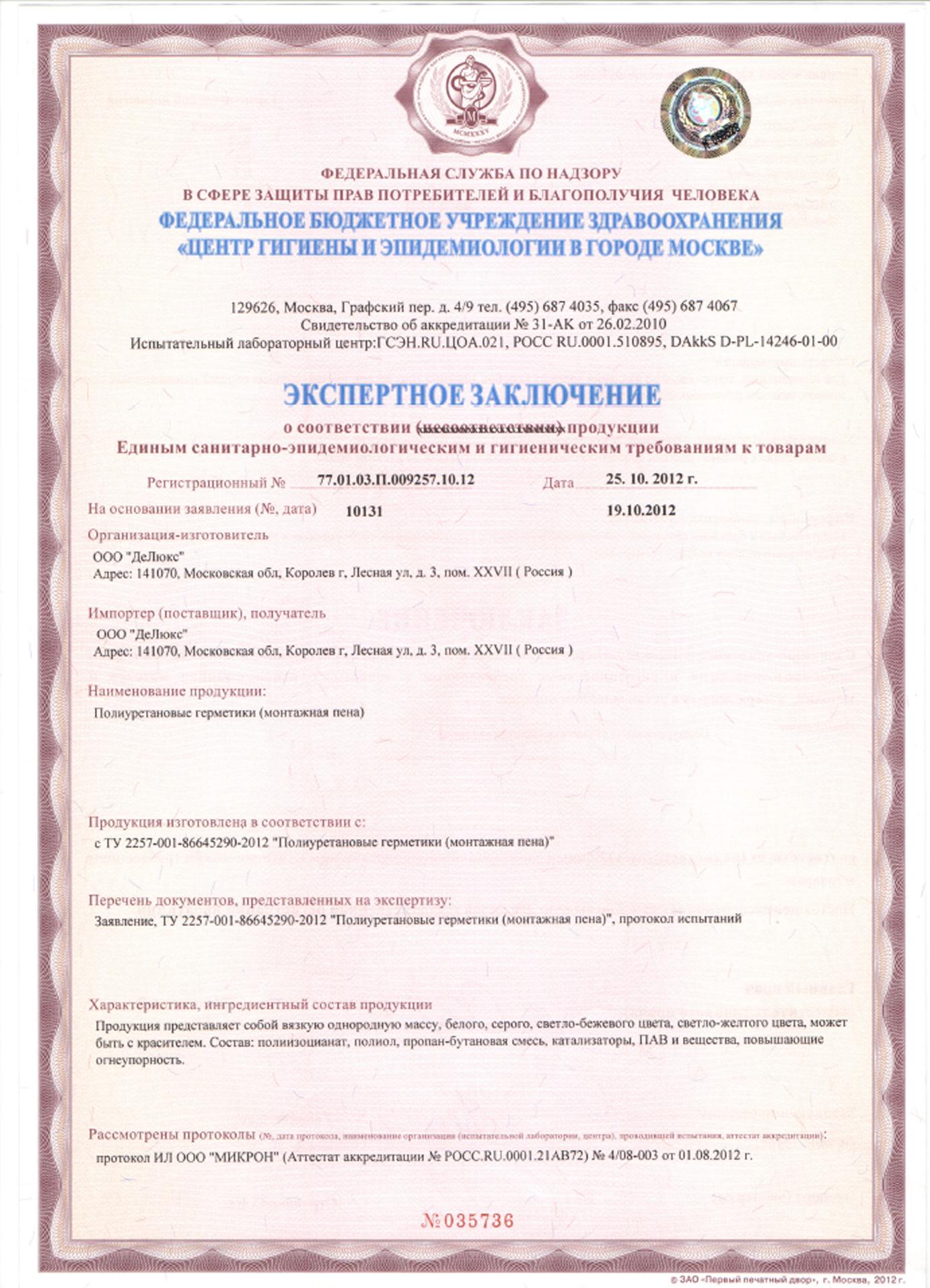 | Тип товара: | Пена монтажная |