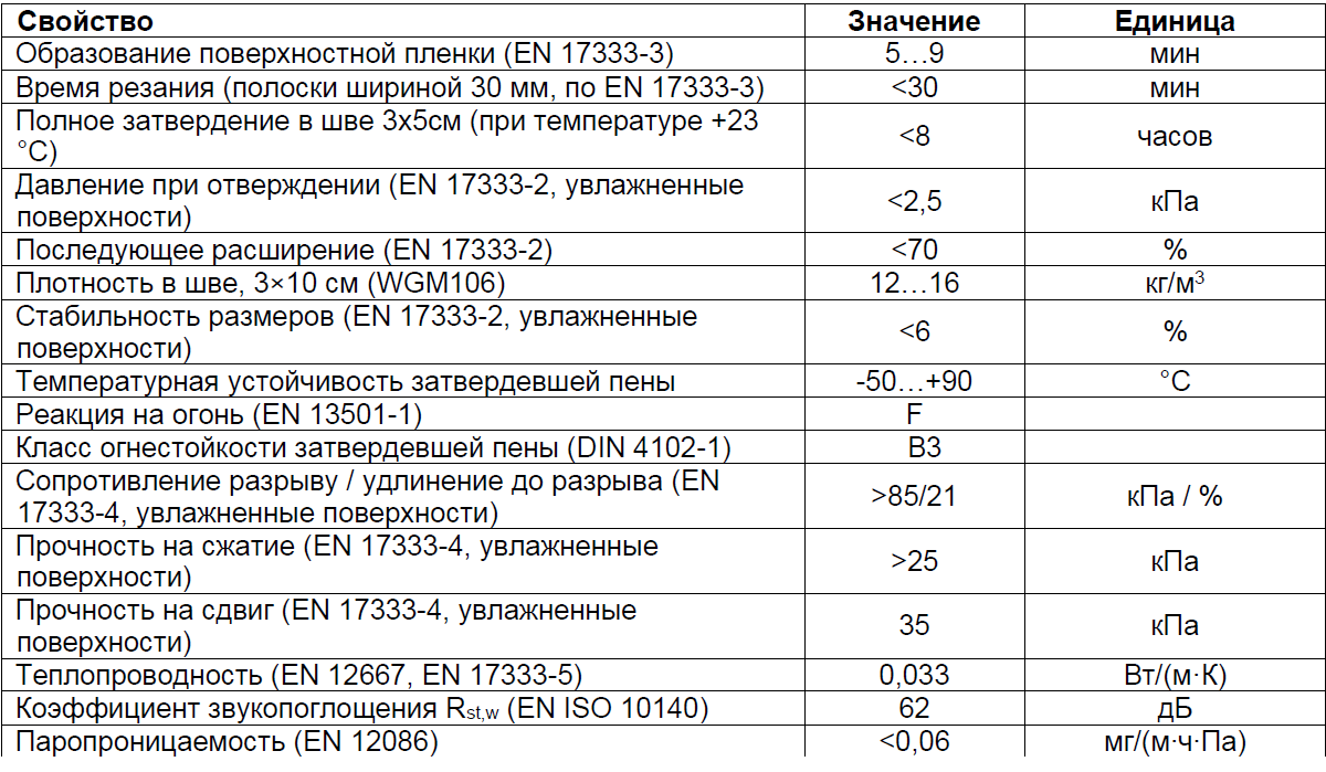 Температура воздуха во время применения: от -5 °C до +35 °C. Температура окружающей среды должна оставаться в этом диапазоне до полного отверждения пены.