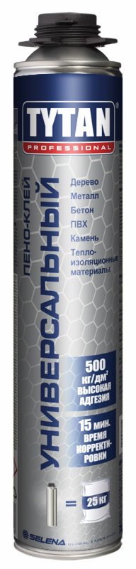 Пено-клей универсальный Tytan Professional профессиональный - однокомпонентный быстросохнущий полиуретановый клей, полимеризующийся за счет влаги воздуха. Для наружных и внутренних работ.