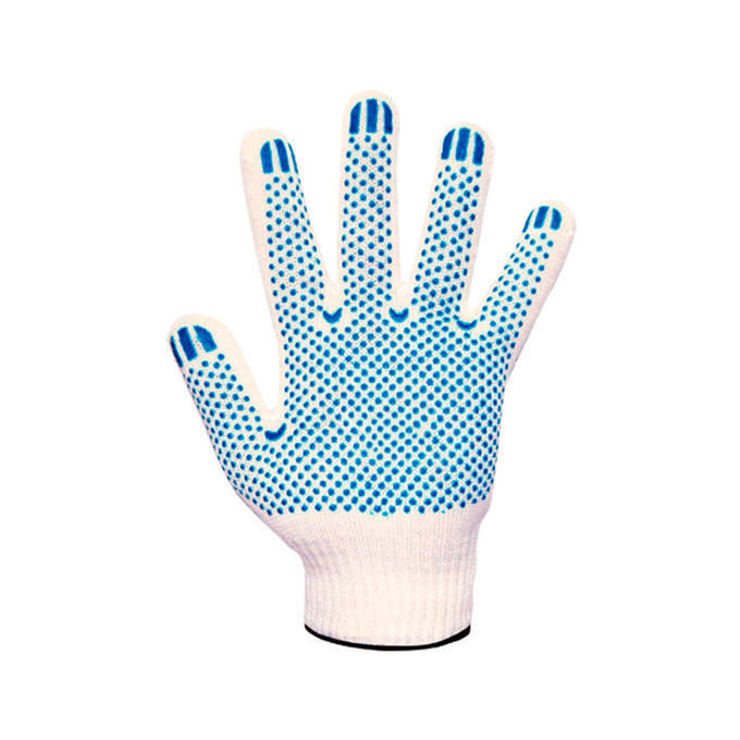 Перчатки трикотажные с ПВХ (точки) 4 нити - перчатки трикотажные с ПВХ-точкой, нанесенной на внутреннюю часть перчатки, являются прочный и надежным средством для защиты рук во время проведения работ как на закрытых производственных и строительных площадках, так и на открытых площадках с пониженной температурой. ПВХ-точки являются дополнительной защитой перчатки от износа, что позволяет продлить срок использования перчаток. Перчатки трикотажные с ПВХ-точкой можно использовать для различных работ, когда требуется, чтобы руки оставались чистыми и чтобы обеспечивался надежный захват детали или инструмента.