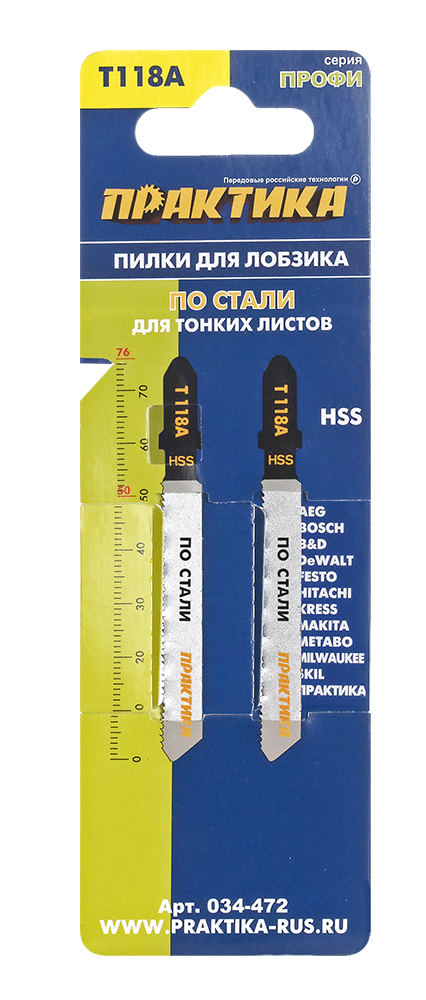 Пилки для лобзика по металлу Практика Т118А 2шт/уп