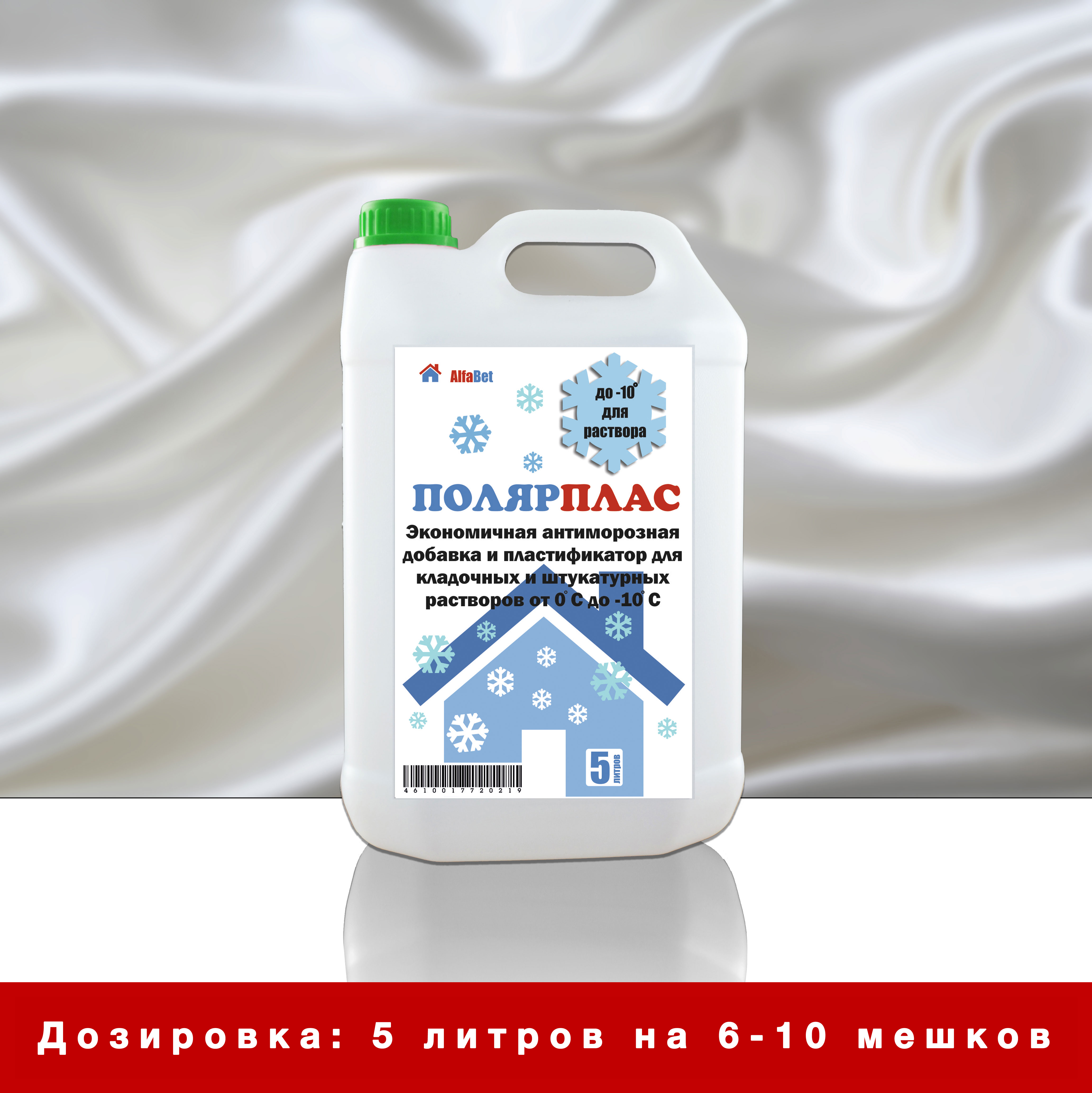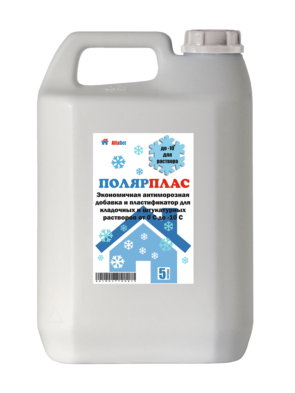 Антифриз пластификатор для цементных растворов Полярпласт до -10 С, 5 л - добавка для кладочных и штукатурных растворов, полностью заменяющая известь, позволяет вести работы при температуре до -10°C, улучшает пластичность, повышает прочность, сводит к минимуму возможность возникновения трещин и разломов на поверхности готового продукта.
