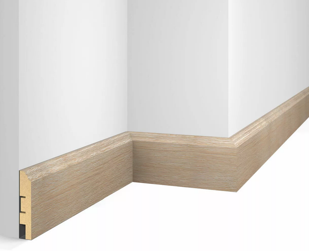 Основа плинтуса – МДФ - производится из древесных волокон с добавлением лигнина и парафина. Покрытие плинтуса - Экошпон - декоративное покрытие c 3D эффектом - многослойная, высококачественная бумага. Специальный лак защищает декор от различных видов загрязнения