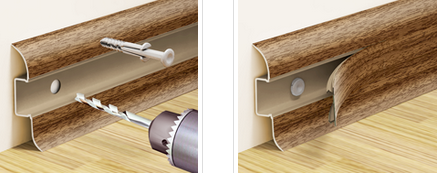 - Плинтус S-образной формой с центральным кабель-каналом для монтажа и проводов;