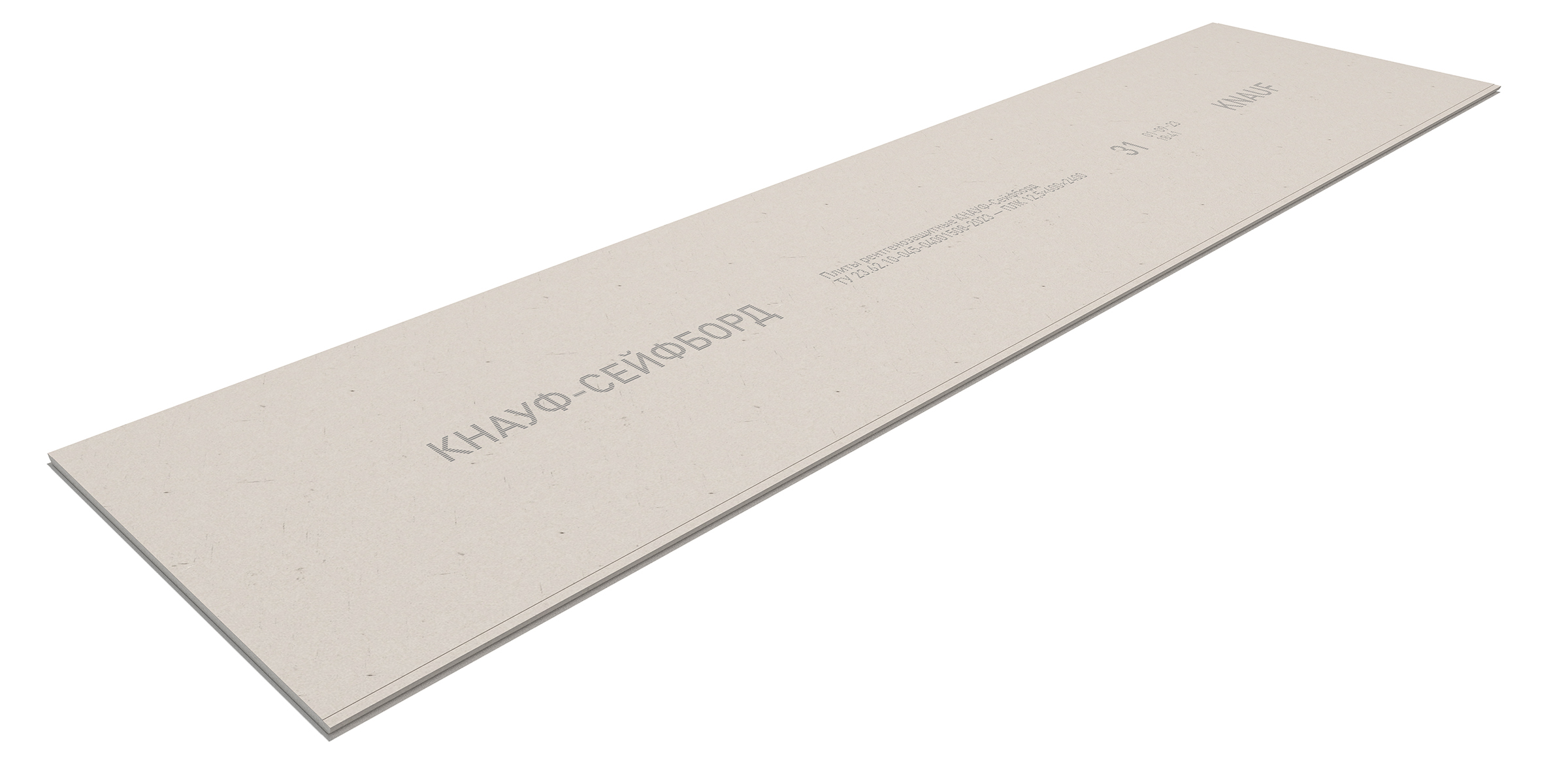 Гипсокартон КНАУФ Сейфборд 12,5х600х2400мм – рентгенозащитная плита (листовое изделие), состоящая из специального сердечника на основе гипса и сульфата бария, все плоскости которого (кроме торцевых кромок) облицованы картоном.