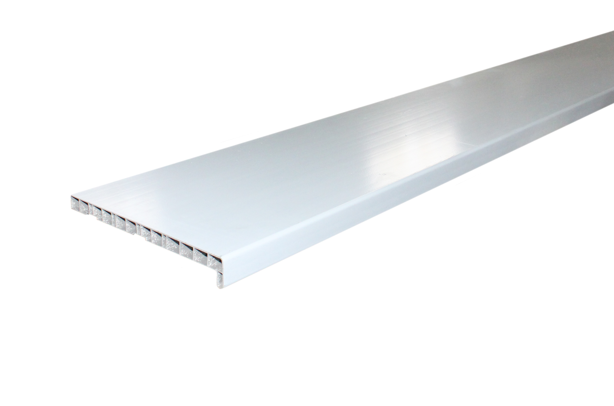 Конструкция подоконника представляет собой полую пластиковую доску с вертикальными рёбрами жёсткости.
